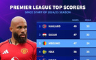 上赛季至今英超进球数前10:哈兰德、萨拉赫前2,姆伯莫第3